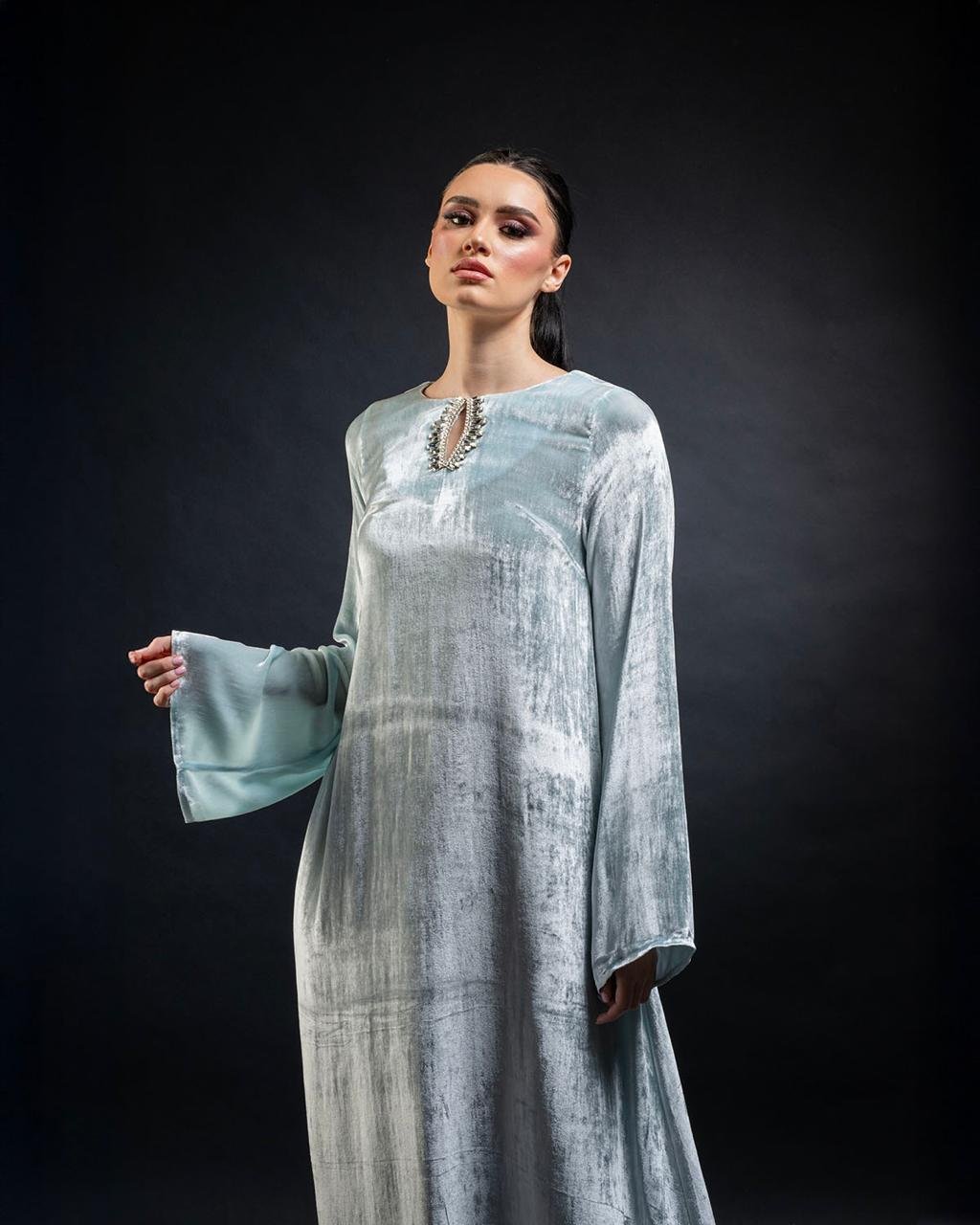 & Free Shippingقفطان راقي من المخمل الحرير الفاخر والكريستال المستورد بتصميم خاص