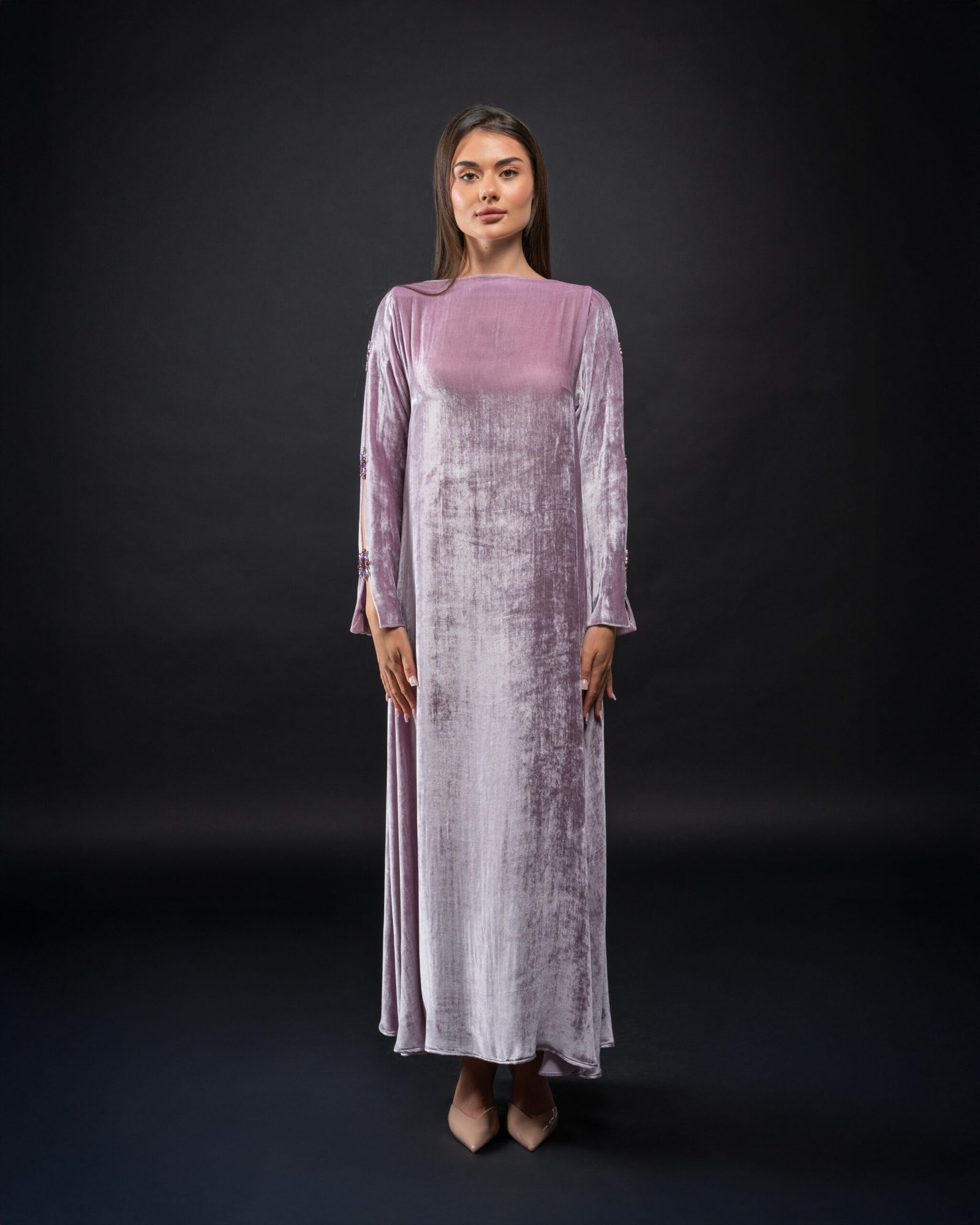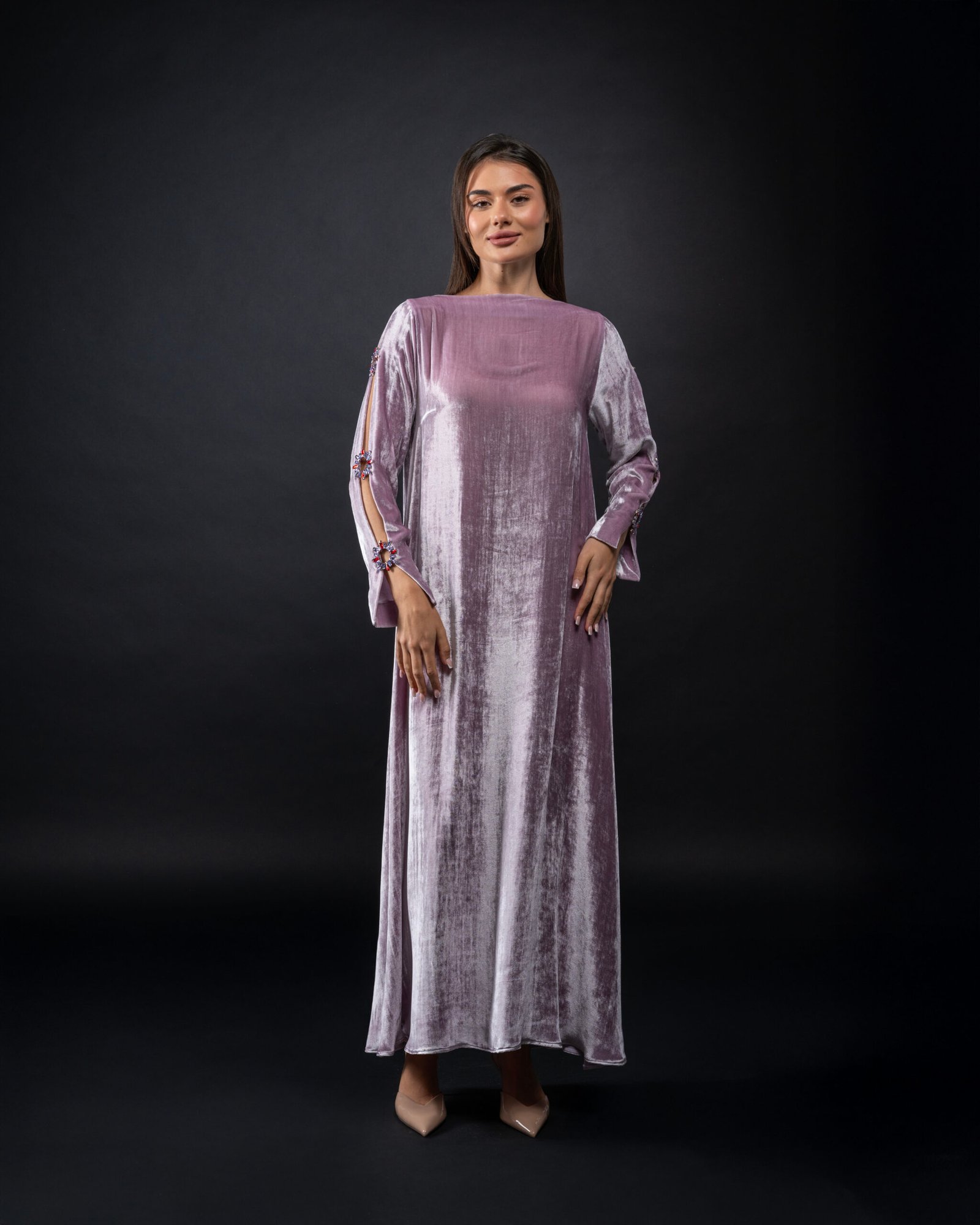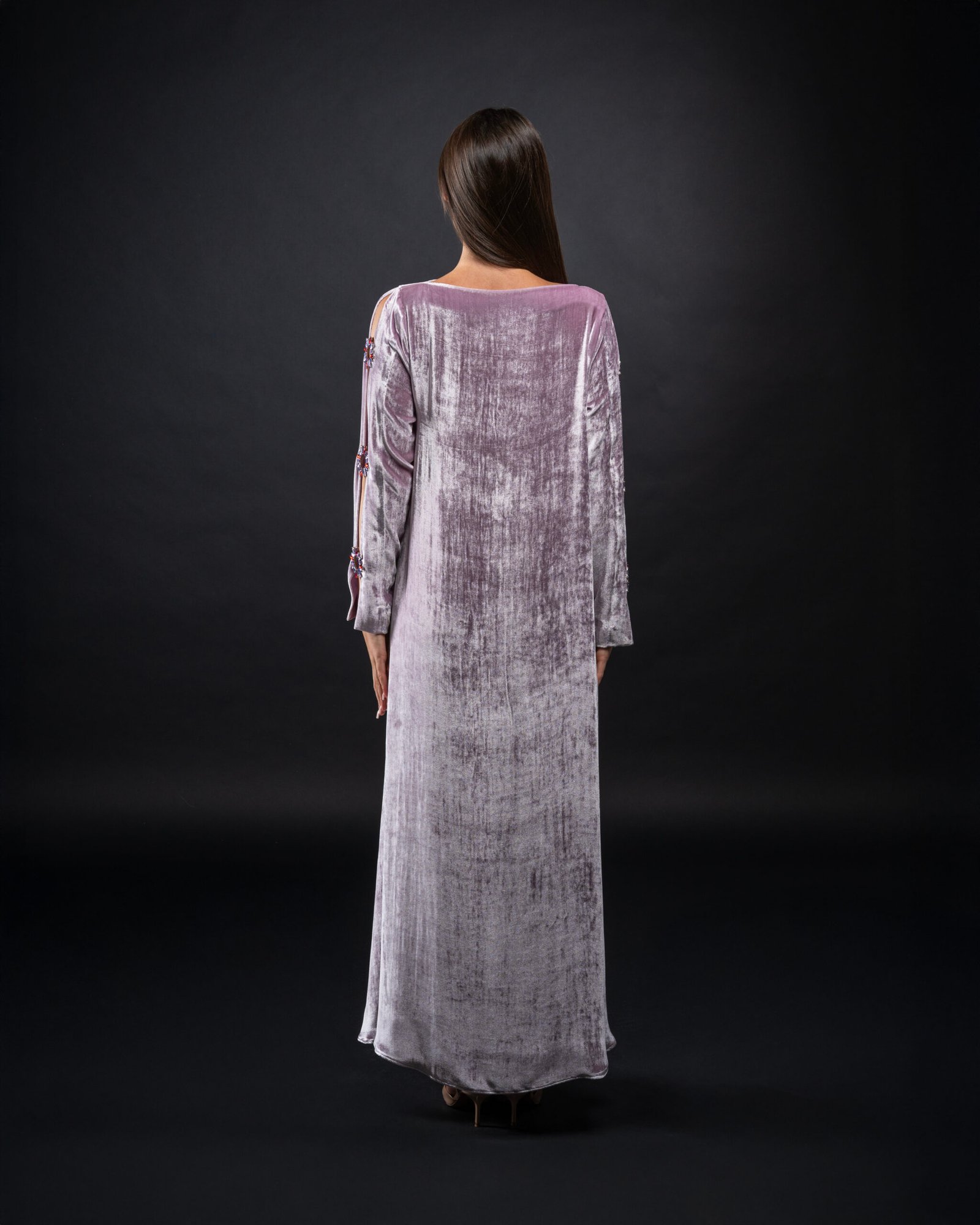 فستان راقي من المخمل الحرير الفاخر والكريستال المستورد بتصميم خاص