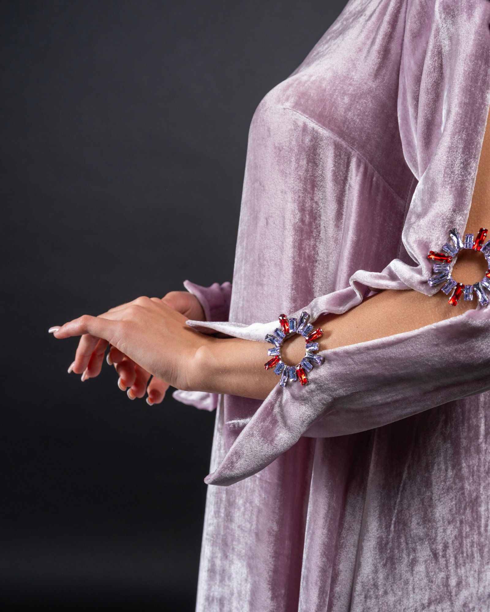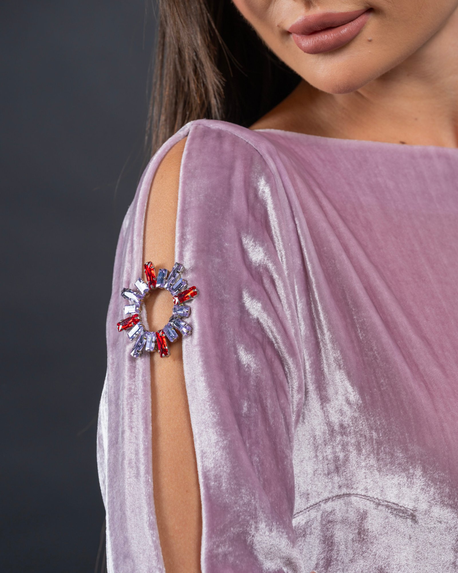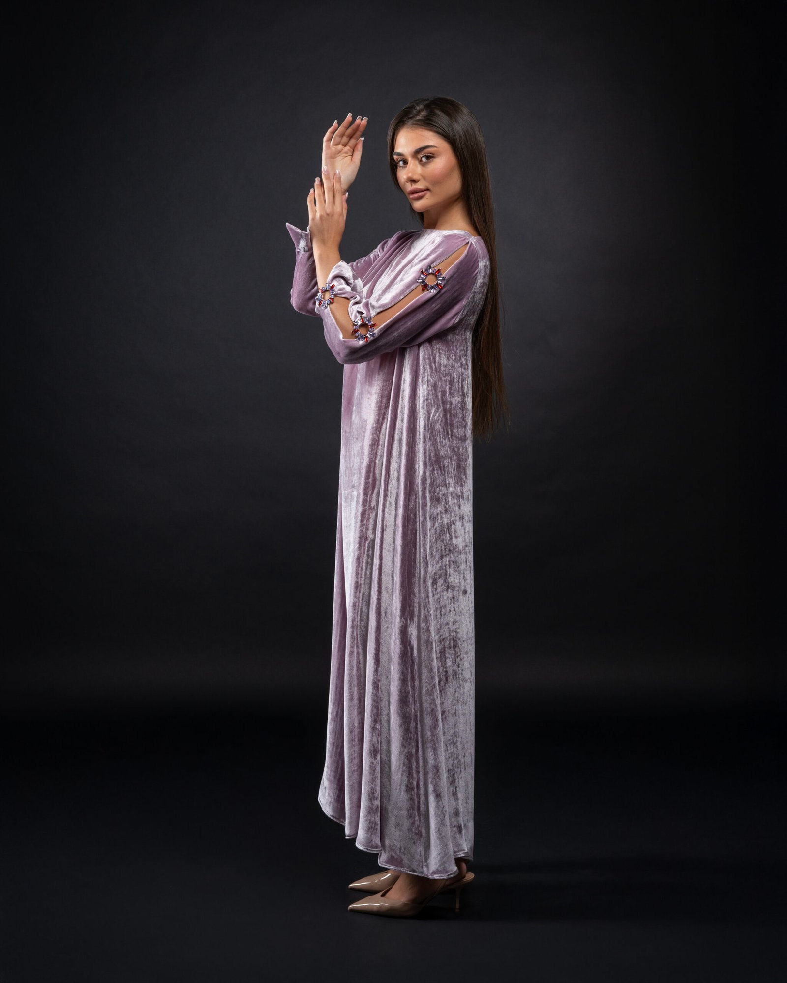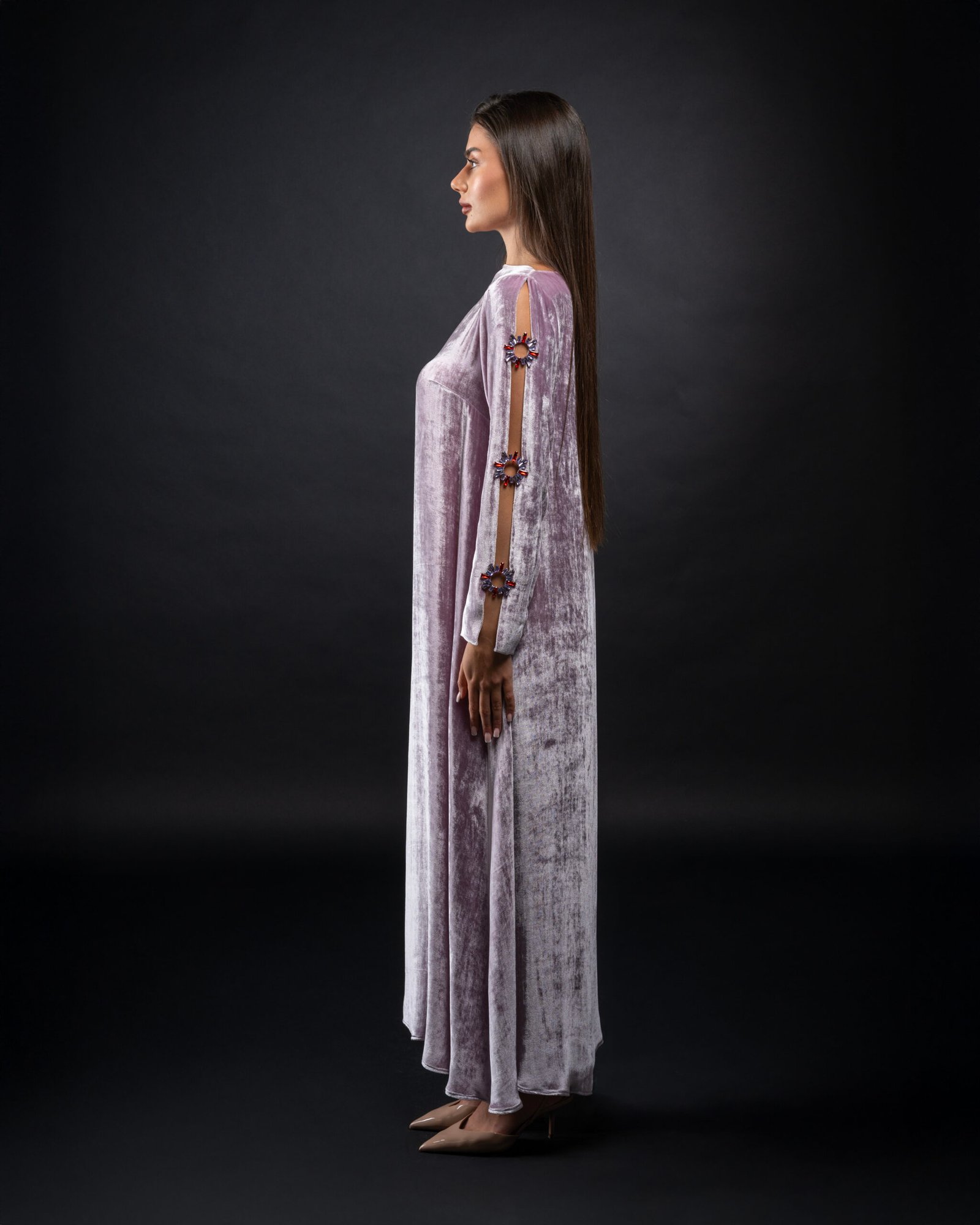 فستان راقي من المخمل الحرير الفاخر والكريستال المستورد بتصميم خاص