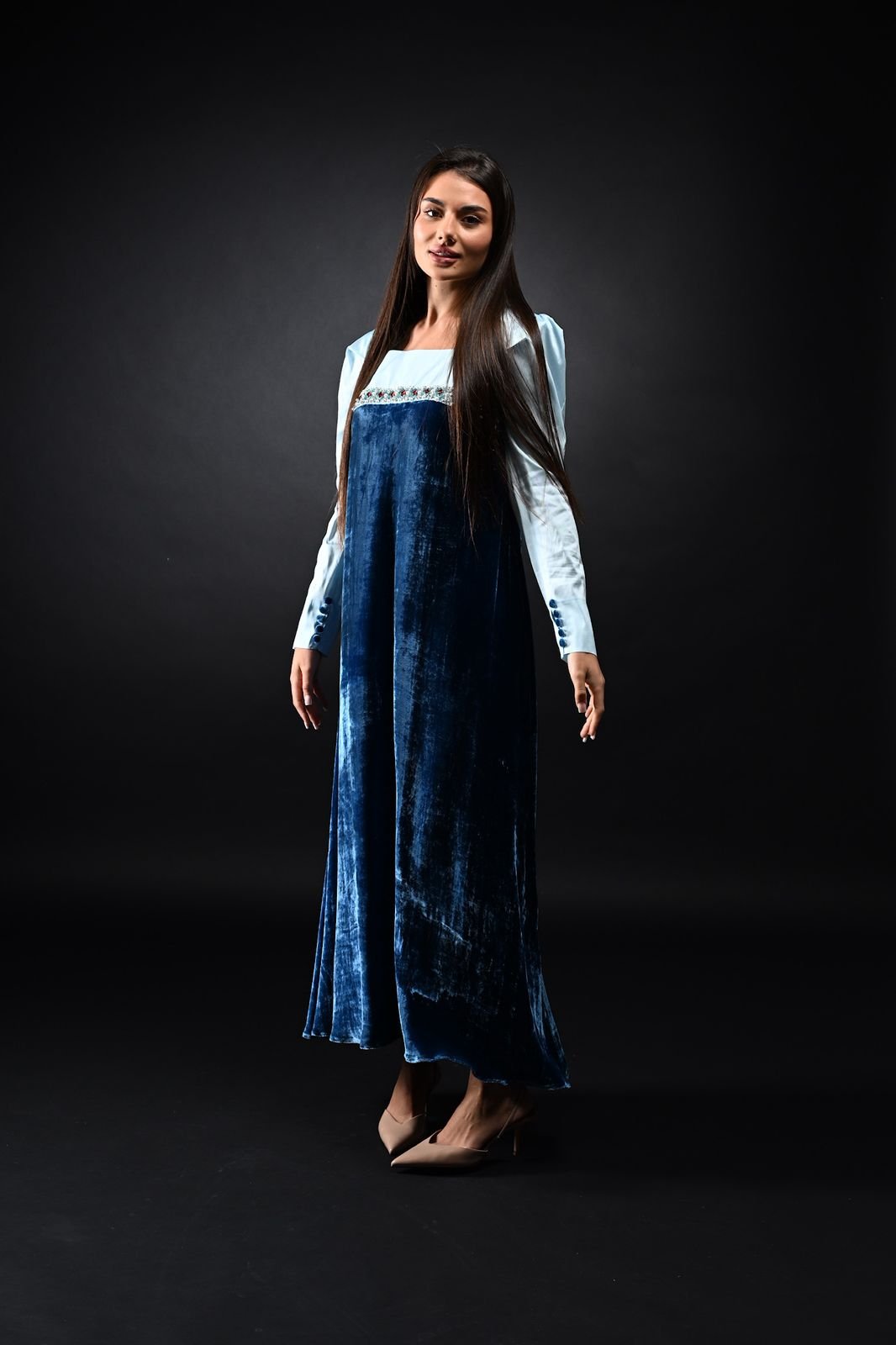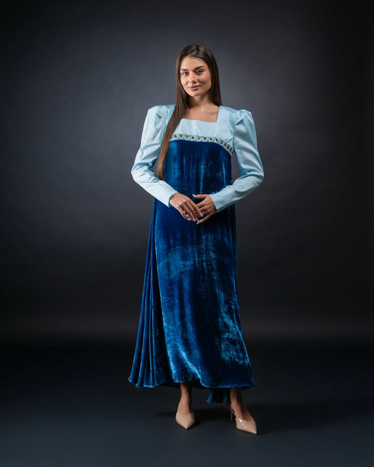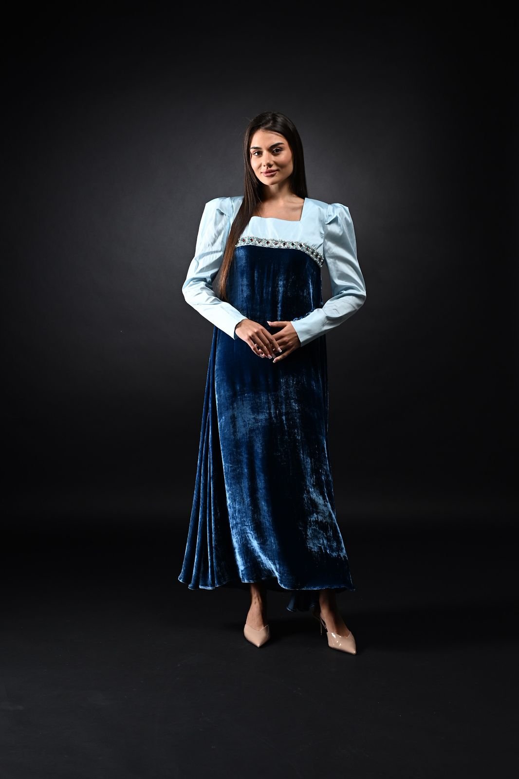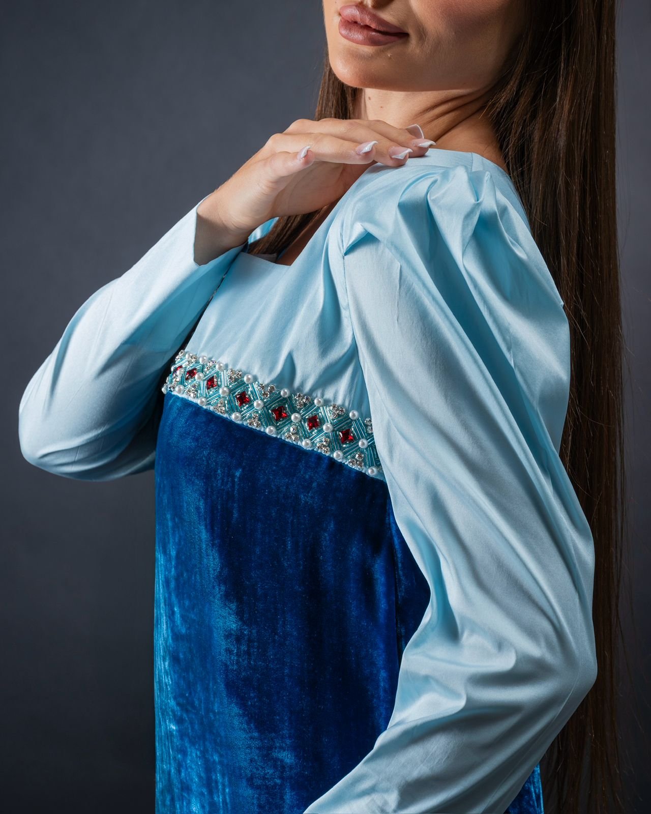 & Free Shippingفستان راقي من المخمل الحرير الفاخر والتفته مشغول بالشك والكريستال المستورد